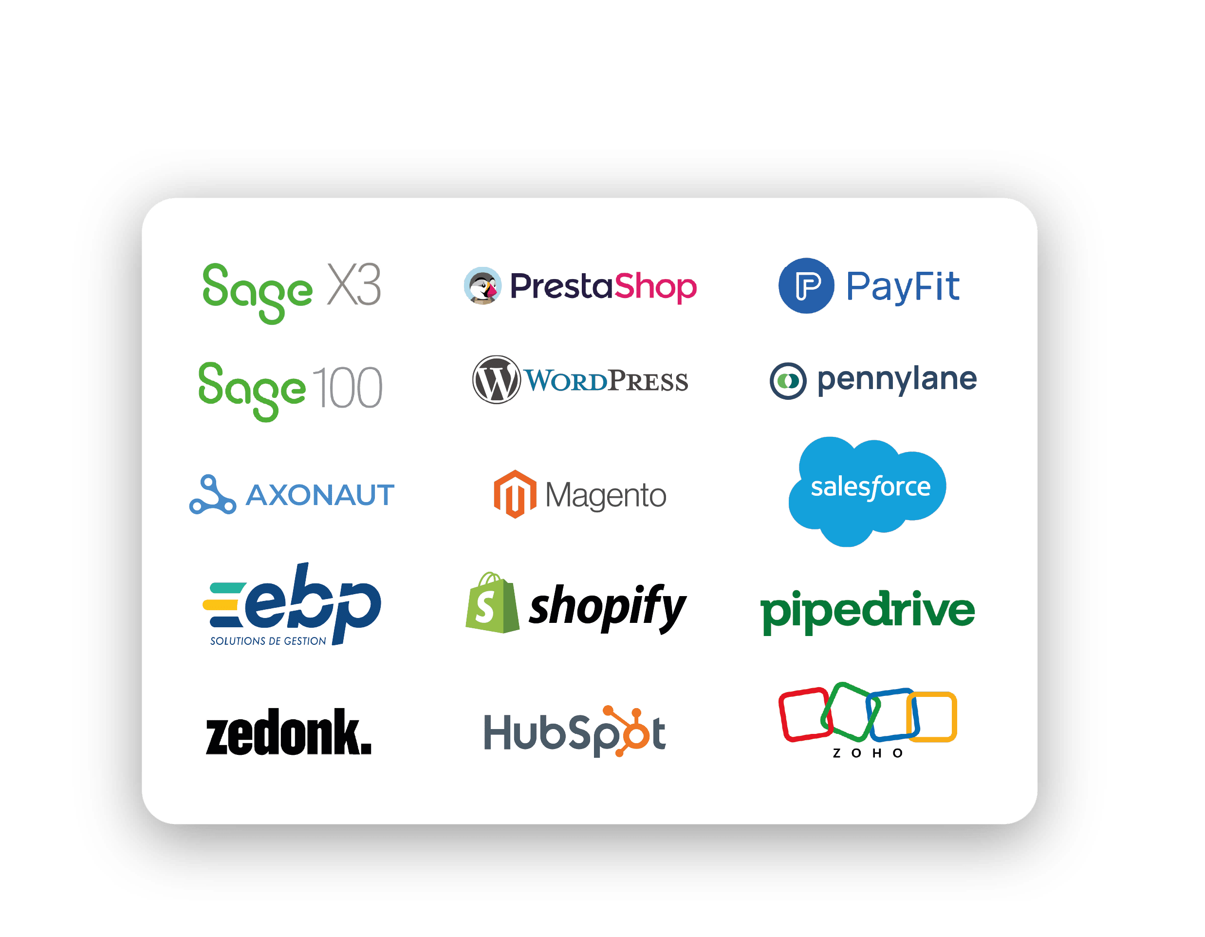 kpiWeb a développé de nombreuses interfaces avec les principales solutions du marché (SAGE X3, Magento, Hubspot, Axonaut, …) intégrées dans sa composante SMART BI Factory.