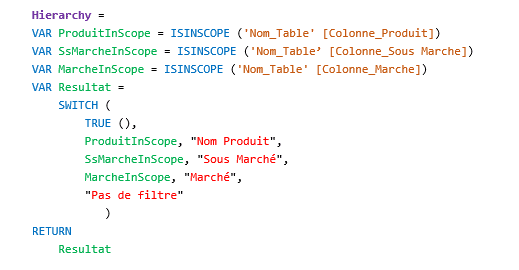 Nous allons commencer par créer la hiérarchie produit grâce au langage DAX :